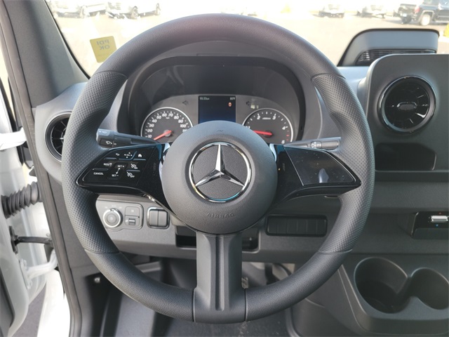 2025 Mercedes-Benz Sprinter 2500 Cargo 144 WB 3D Cargo Van Arctic White 14V/280 A Alternator, 16" x 6.5J Steel Wheels, 2 Additional Master Keys, 3.923 Axle Ratio, 4-Wheel Disc Brakes, 5 Speakers, ABS brakes, Air Conditioning, AM/FM radio, Armrest for Driver's Seat, Armrest for Front Passenger's Seat, ATTENTION ASSIST, Blind Spot Assist, Bodyside moldings, Brake assist, Co-Driver Thorax-Pelvis Sidebag, Diesel Misfueling Prevention, Door-Mounted Assist Handles, Driver & Passenger, Driver Convenience Package, Driver door bin, Driver Seat Base 12V Power Outlet, Driver's Seat Mounted Armrest, Driver's Seat Occupancy Sensor, Dual front impact airbags, Dual front side impact airbags, Electrically Folding Exterior Mirrors, Electronic Stability Control, Emergency communication system, Exterior Parking Camera Rear, Front anti-roll bar, Front Bucket Seats, Front Passenger Airbag, Front wheel independent suspension, Fully automatic headlights, Heated door mirrors, Heated Driver's Seat, Heated front seats, High Roof, Hinged Lid for Left & Right Storage Compartments, Hinged Lid for Storage Compartment, Illuminated entry, Jet Black Painted Rims, Left Rear Door Assist Handle, Low tire pressure warning, Maturin Fabric Upholstery, No Factory Installed Flooring, Opening to Side Wall Rear Doors, Outside temperature display, Overhead airbag, Overhead console, Passenger door bin, Passenger seat mounted armrest, Power door mirrors, Power steering, Power windows, Radio: Standard, Rain sensing wipers, Rear anti-roll bar, Rear Door Convenience Package, Rear Doors 90 Degree Fixation Point, Remote keyless entry, Side Wall Paneling Full Hardboard, Sideguard Assist, Speed control, Standard Driver Seat, Standard Front Passenger Seat, Steering wheel mounted audio controls, Tachometer, Tilt steering wheel, Traction control, Trailer Hitch, Trailer Hitch Rear Half-Sided Step, Variably intermittent wipers, Wood Floor w/6 D-Rings.