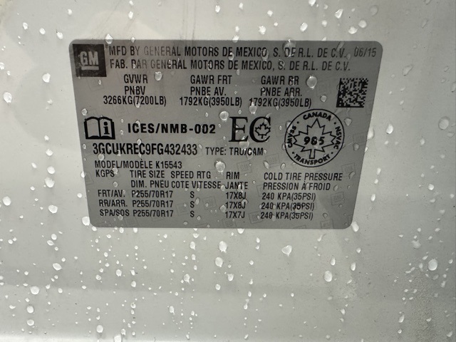 - VIN : 3GCUKREC9FG432433