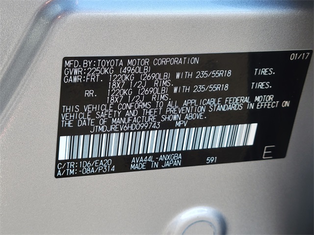 - VIN : JTMDJREV6HD099743