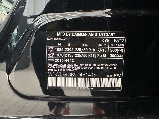 - VIN : WDCTG4GB9JJ461419