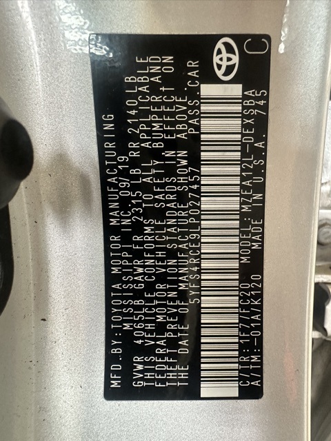 - VIN : 5YFS4RCE9LP027457