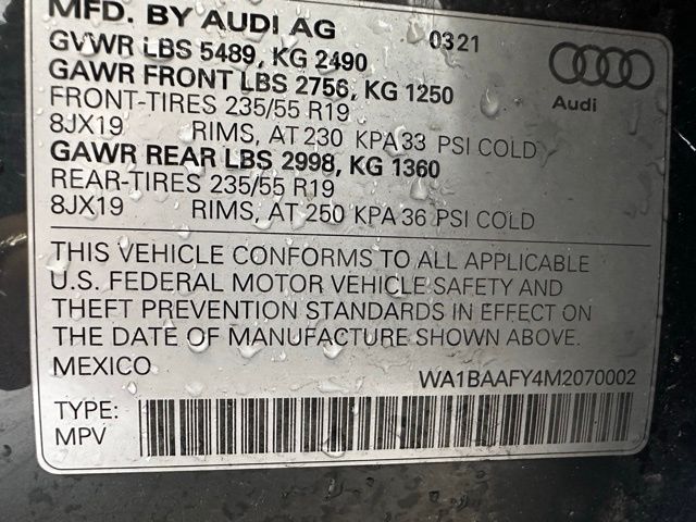 - VIN : WA1BAAFY4M2070002