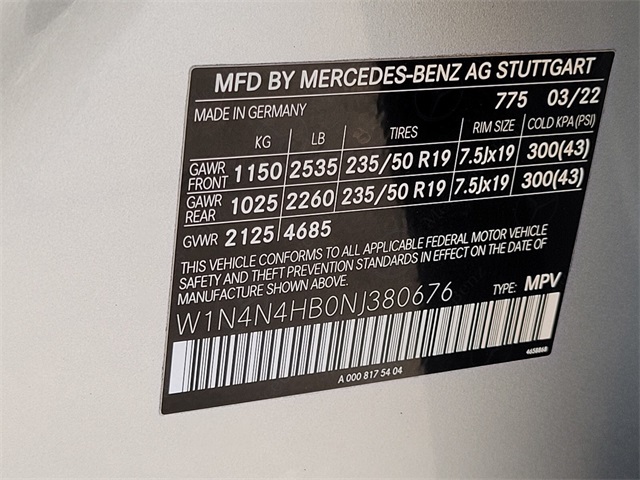 - VIN : W1N4N4HB0NJ380676
