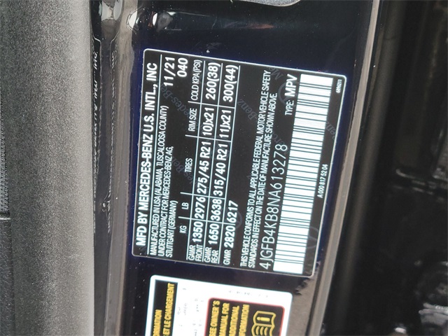 - VIN : 4JGFB4KB8NA613278