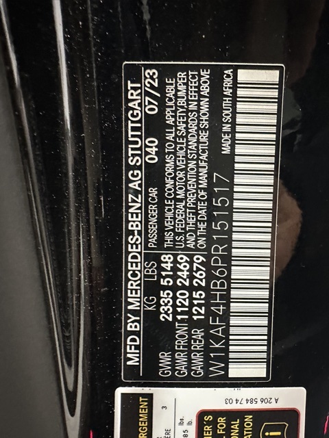 - VIN : W1KAF4HB6PR151517